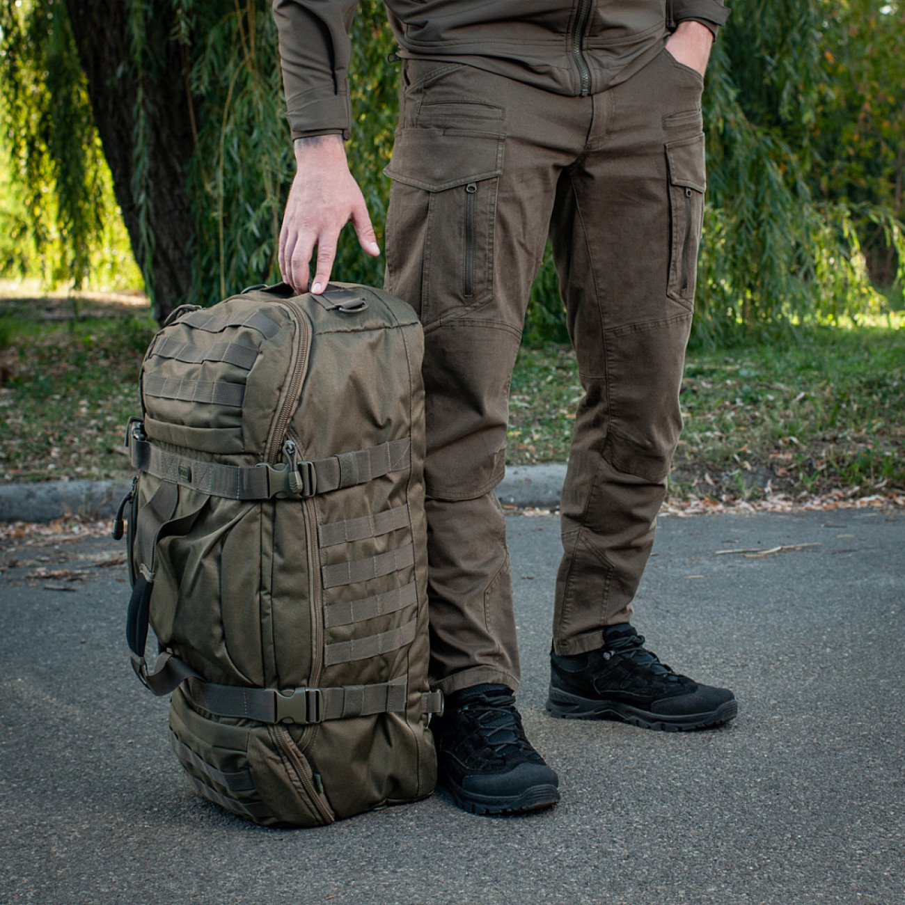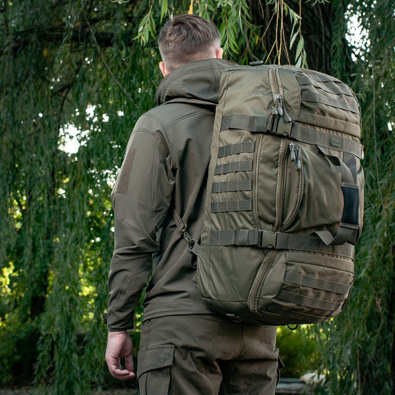 Hammer от M-Tac – это многофункциональный гибрид рюкзака и сумки и может одинаково удобно использоваться в одной или другой роли. Объема 55 л вполне хватит для запаса вещей для командировки, выезда на природу или транспортировки снаряжения.