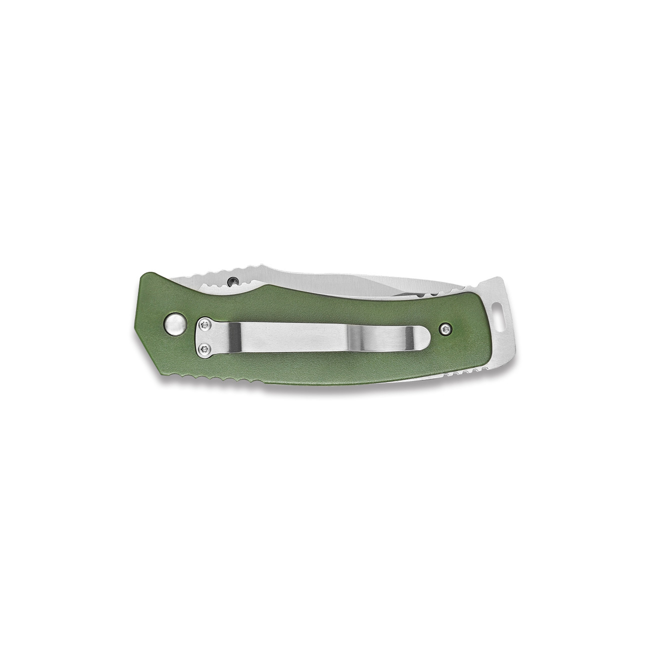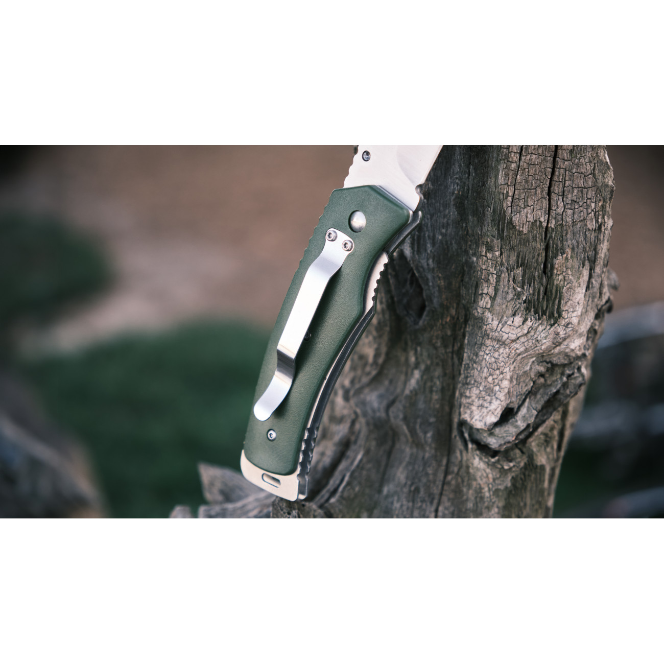 - Широкая однопозиционная клипса позволяет фиксировать нож на поясном ремне или кармане.