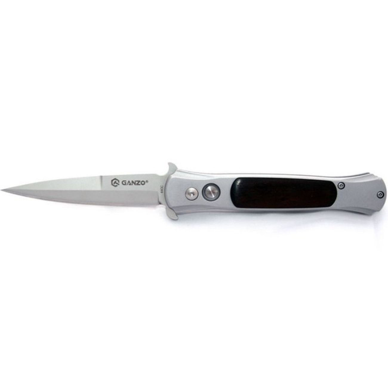 Клинок: Сталь марки 440C; Корпус: Нержавеющая сталь с деревянными вставками