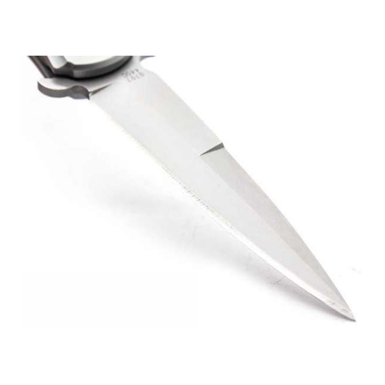 - Лезвие изготовлено из нержавеющей стали 440C с твердостью 58-60 HRC; имеет полуторную прямую заточку.