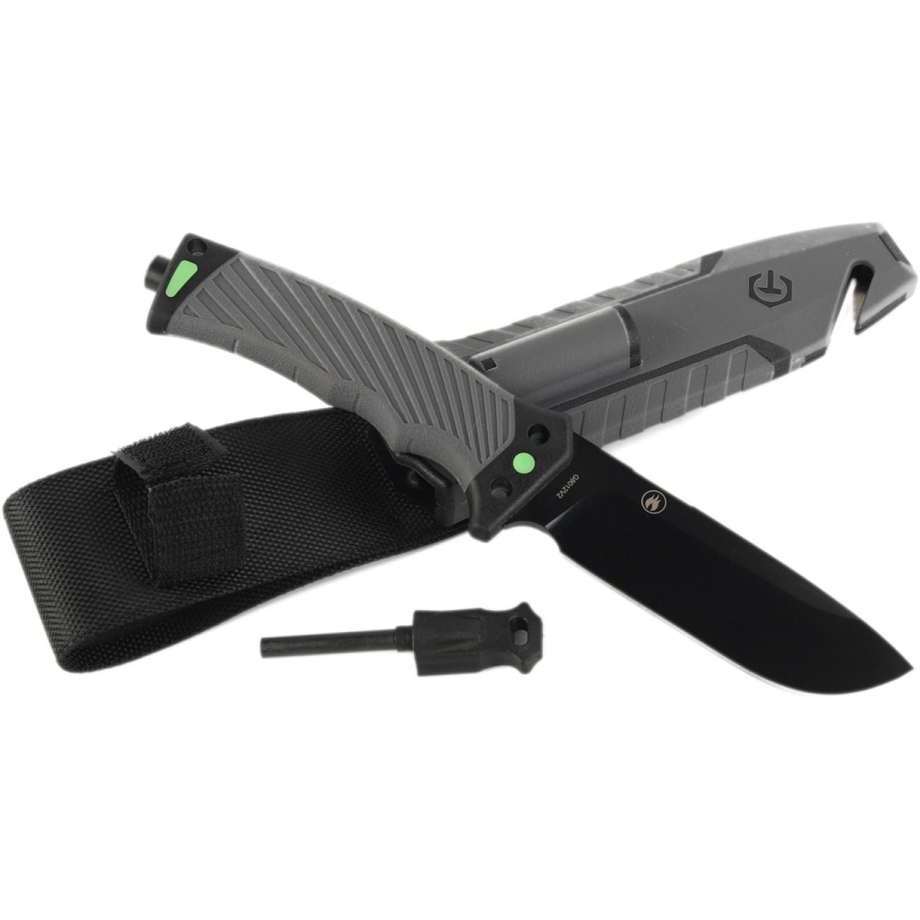 Нож нескладной “G8012V2-GY” (Нержавеющая сталь | Стеклобой + кожух с точилом, стропорезом и огнивом | Серый) ТМ Ganzo
