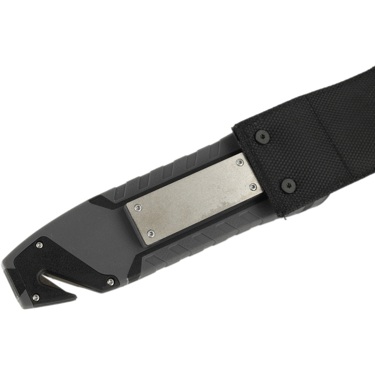 Модель G8012V2-GY от Ganzo позиционируется как нож выживальщика и имеет усиленную конструкцию, способную выдерживать экстремально высокие нагрузки. Клинок переносится и хранится в специальном кожухе, который оснащен рядом дополнительных функций.