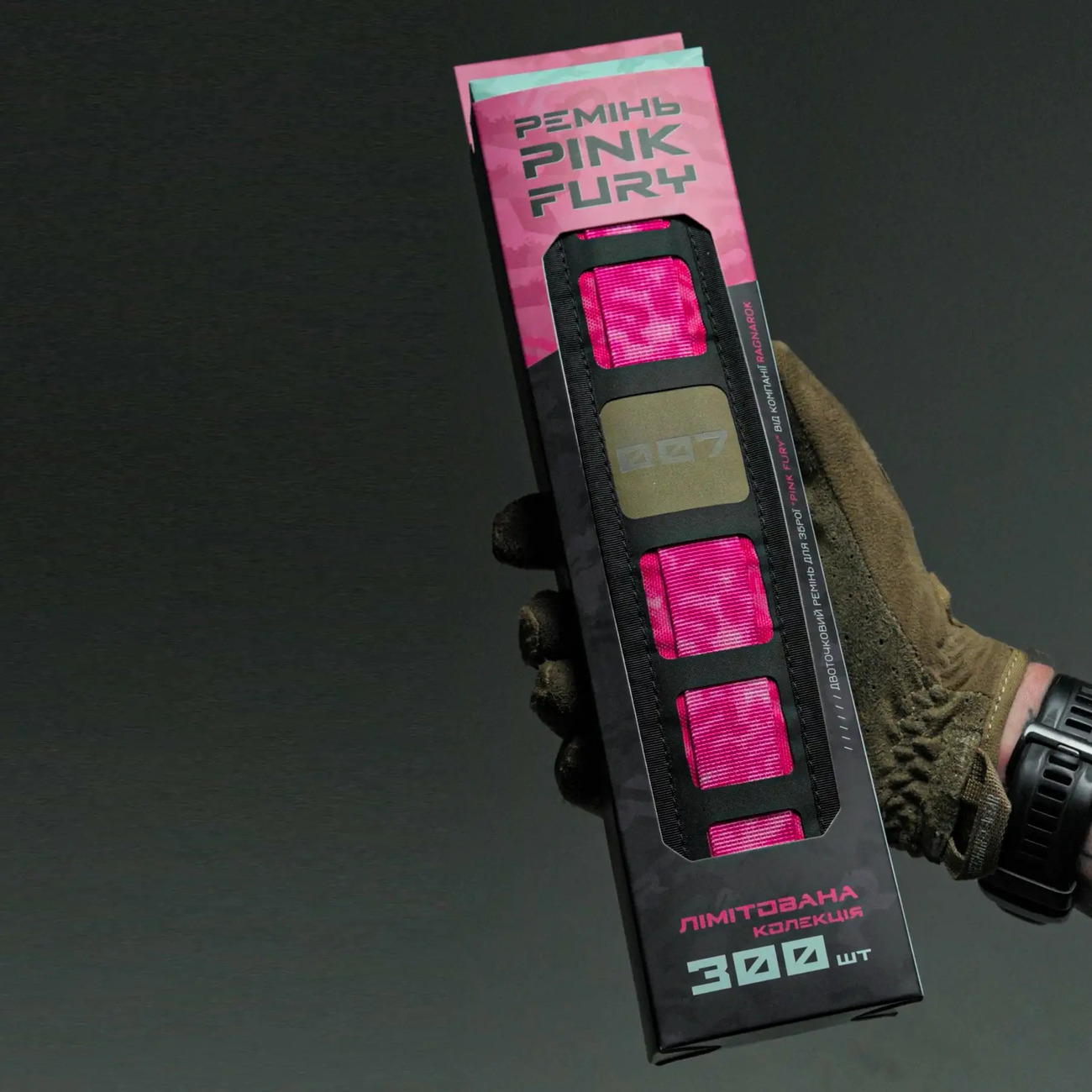 «Pink Fury» – лимитированный тактический ремень в розовом камуфляже. Всего 300 штук, каждый имеет индивидуальный серийный номер, который вы можете выбрать среди предложенных. Такого не будет больше ни у кого.