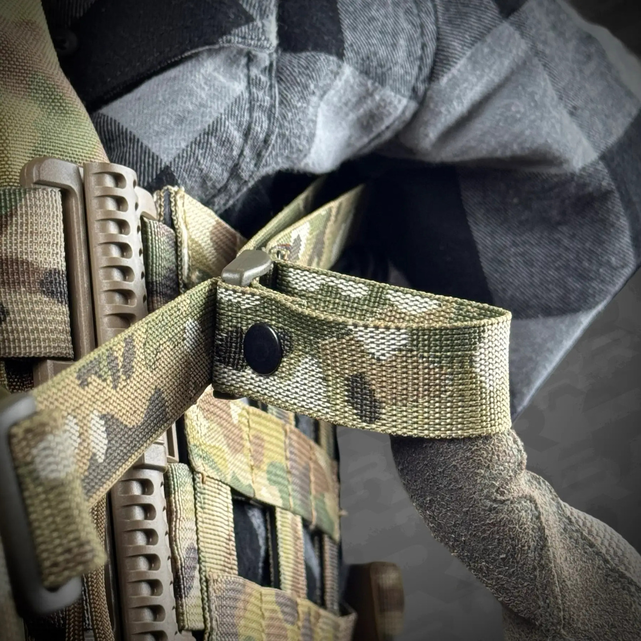 🔹 Металлический карабин типа H&K гарантирует надежное крепление. При необходимости его можно снять и бесшумно закрепить ремень с помощью стропы.