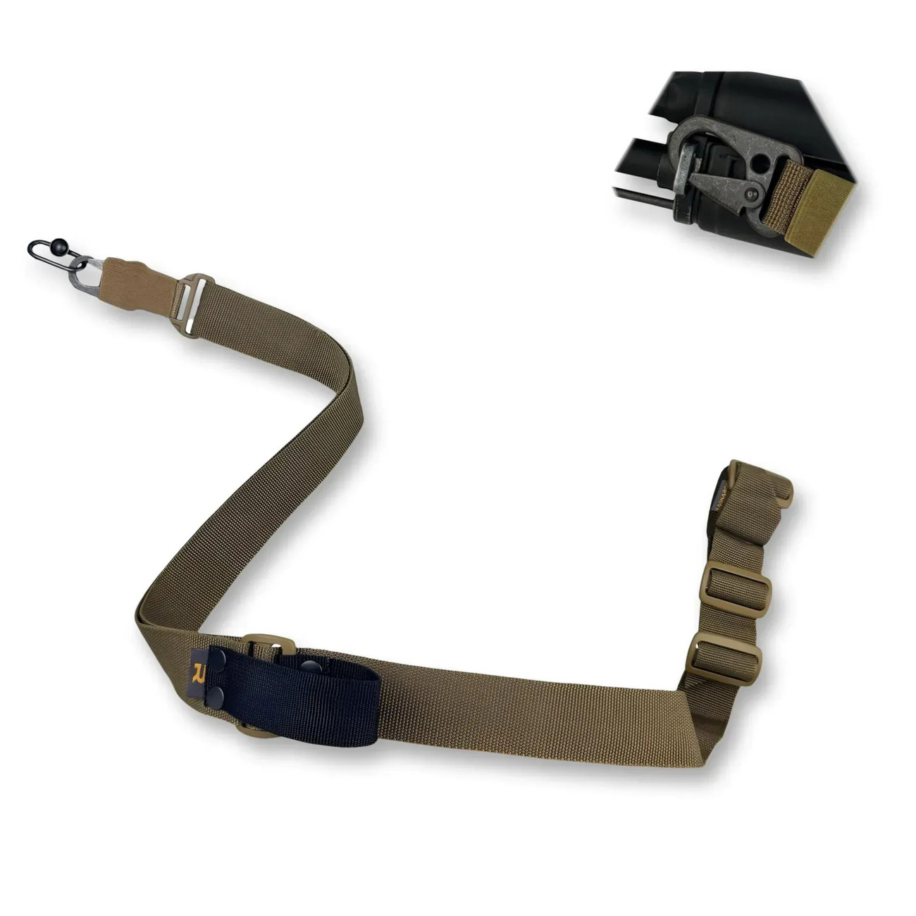 Комбинированный ремень с возможностью перехода из двухточечного в одноточечный режим. Подходит под тяжелые типы оружия.