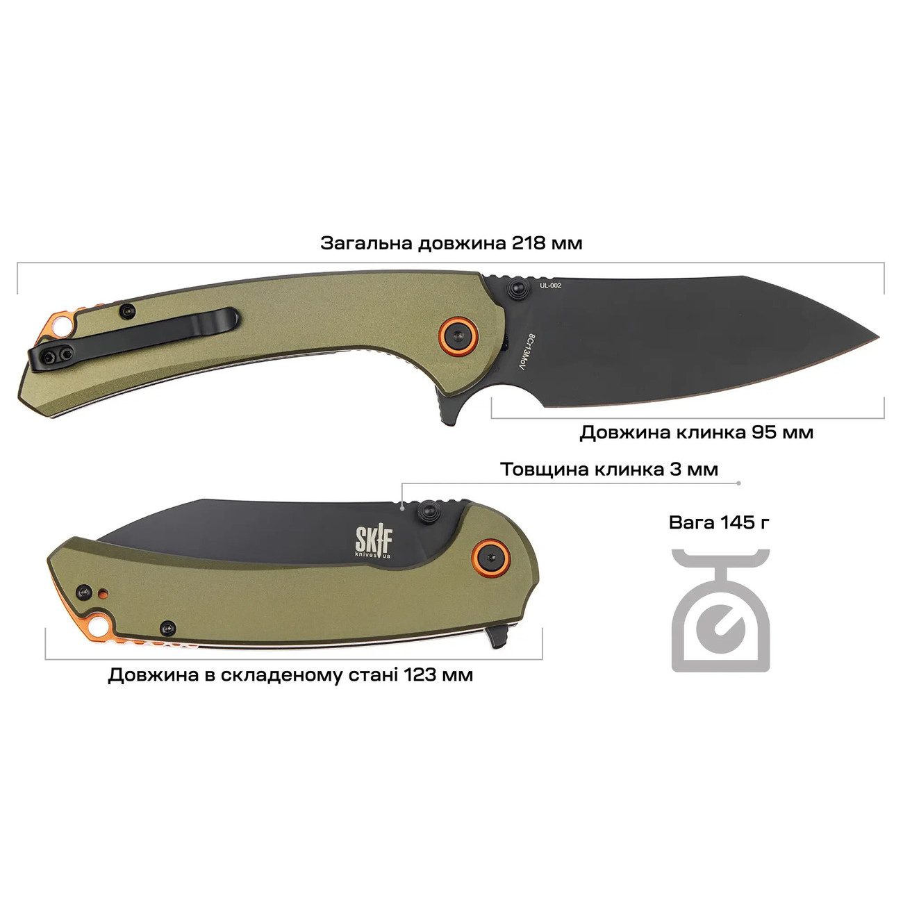 Нож складной “Jock” (Нержавеющая сталь | Черное покрытие лезвия | Олива) ТМ Skif