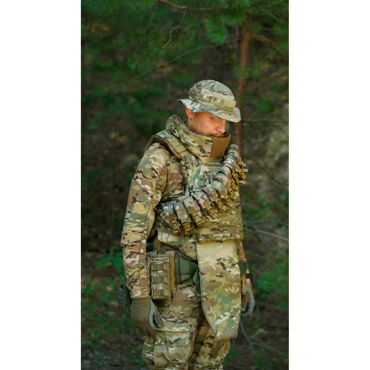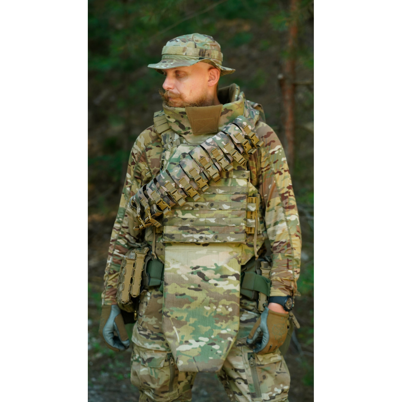 Да, его можно сочетать с плитоносками или бронежилетами – он не мешает основным элементам снаряжения и не дублирует их функции, а наоборот, расширяет возможности для ношения боекомплекта. Его можно быстро надевать или снимать вне зависимости от основного снаряжения.