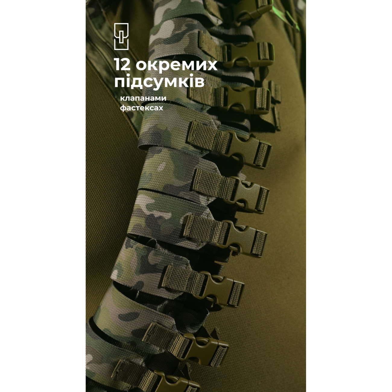 🔹 Каждый подсумок закрывается клапаном с фастексом. Стропа на фастексе регулируется, что позволяет настроить плотность фиксации боеприпасов.