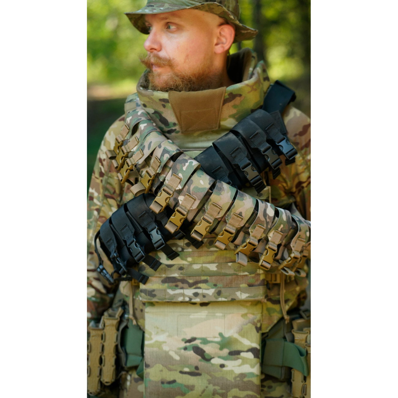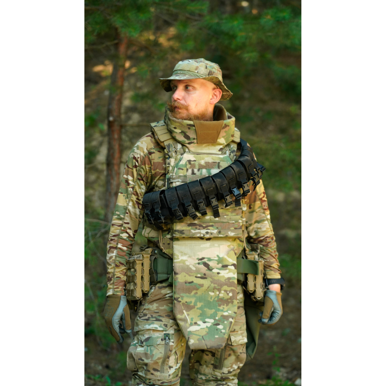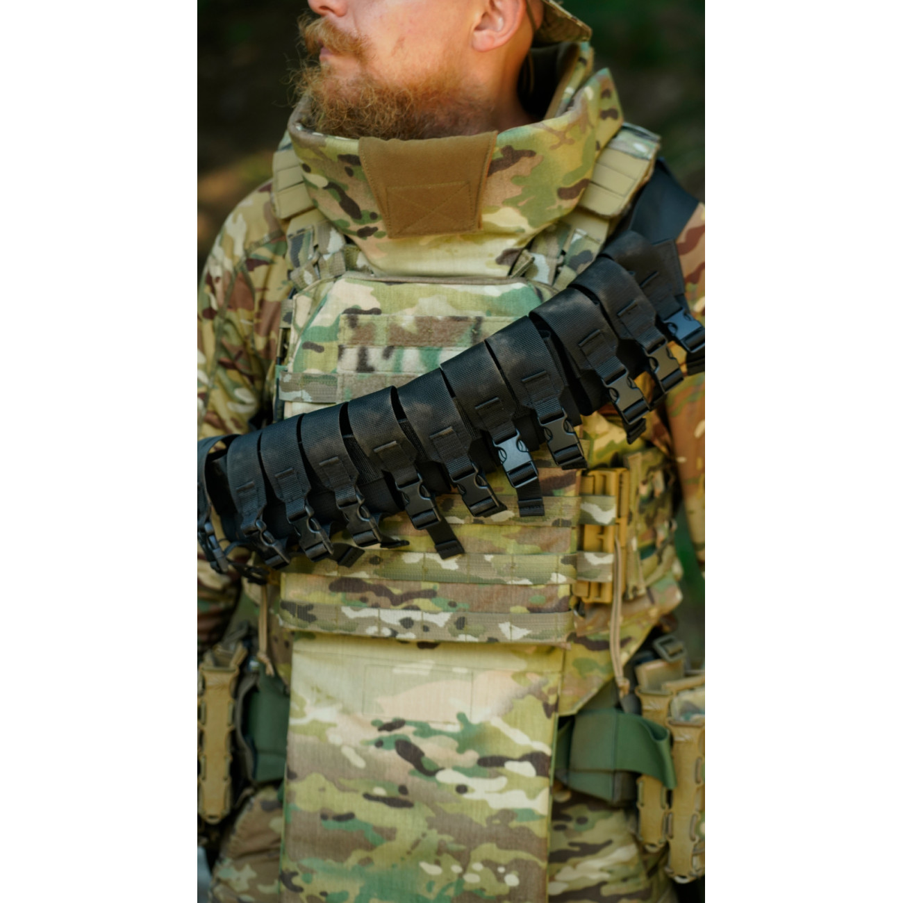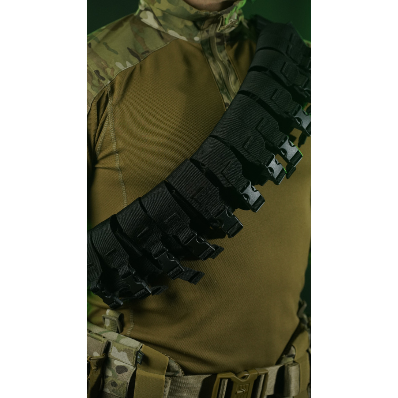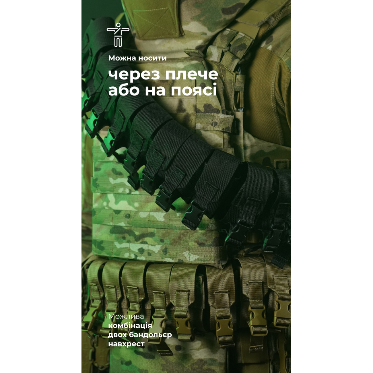 🔹 Благодаря достаточной длине бандольера подходит для бойцов с крупным телосложением, под большие бронежилеты и объемные зимние куртки.