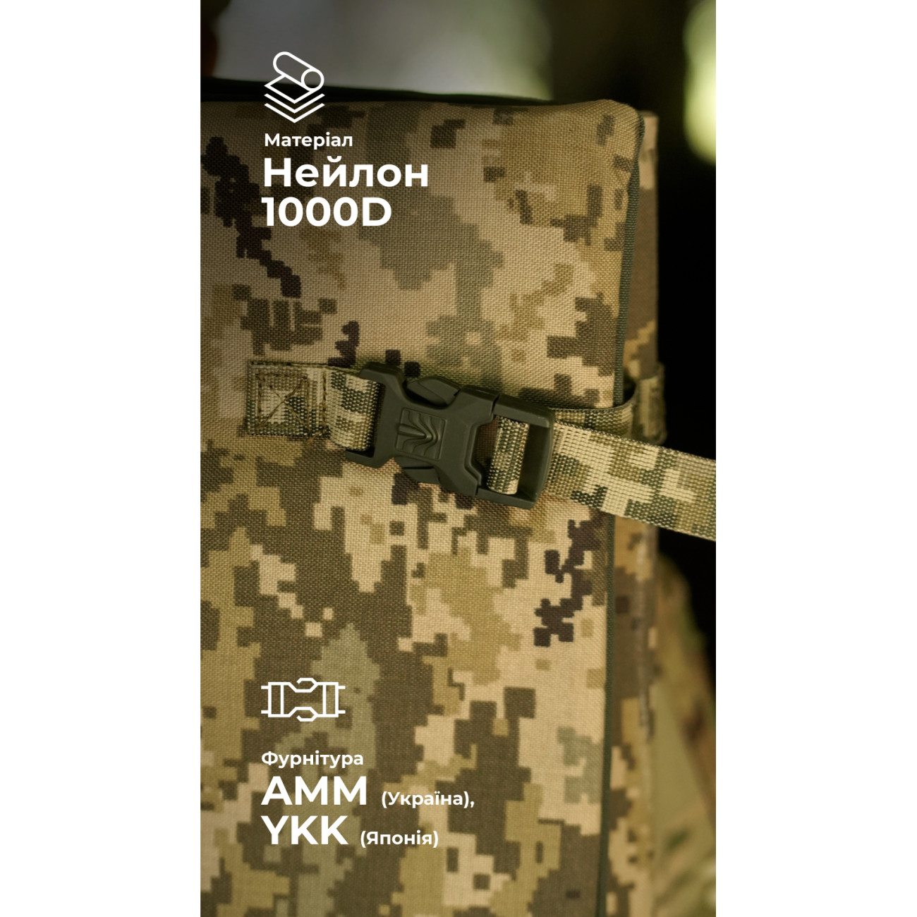 - Выносливые материалы – нейлон 1000D (аналог Cordura) – и фурнитура YKK (Япония), AMM (Украина)