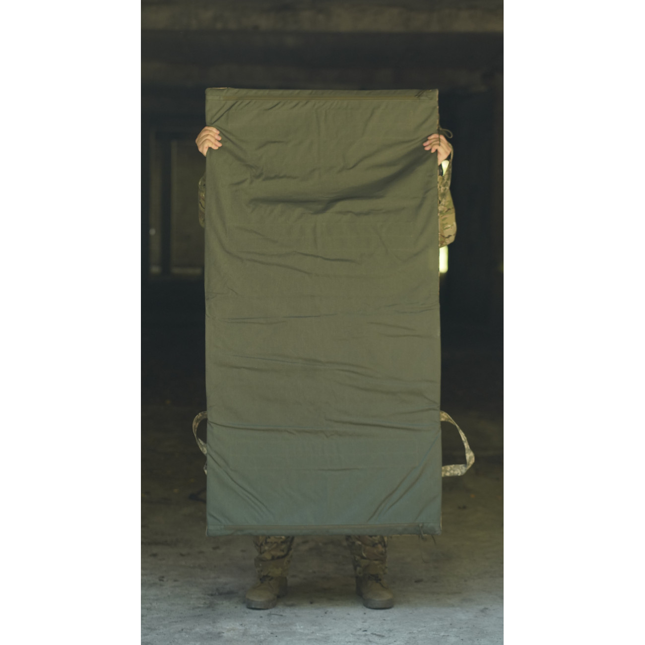 🔹 Бронеодеяло складывается вчетверо, после чего ее края можно закрепить двумя фастексами.