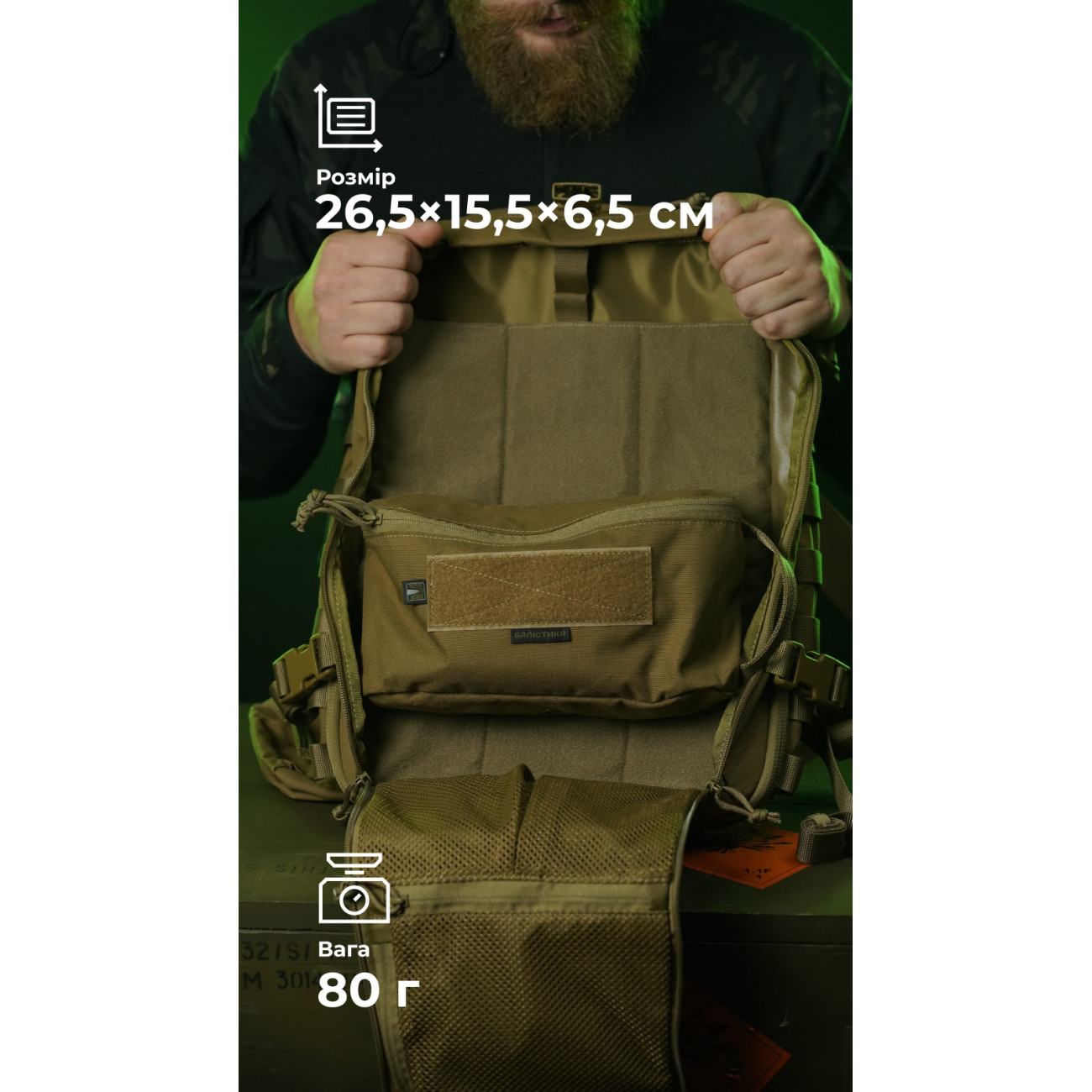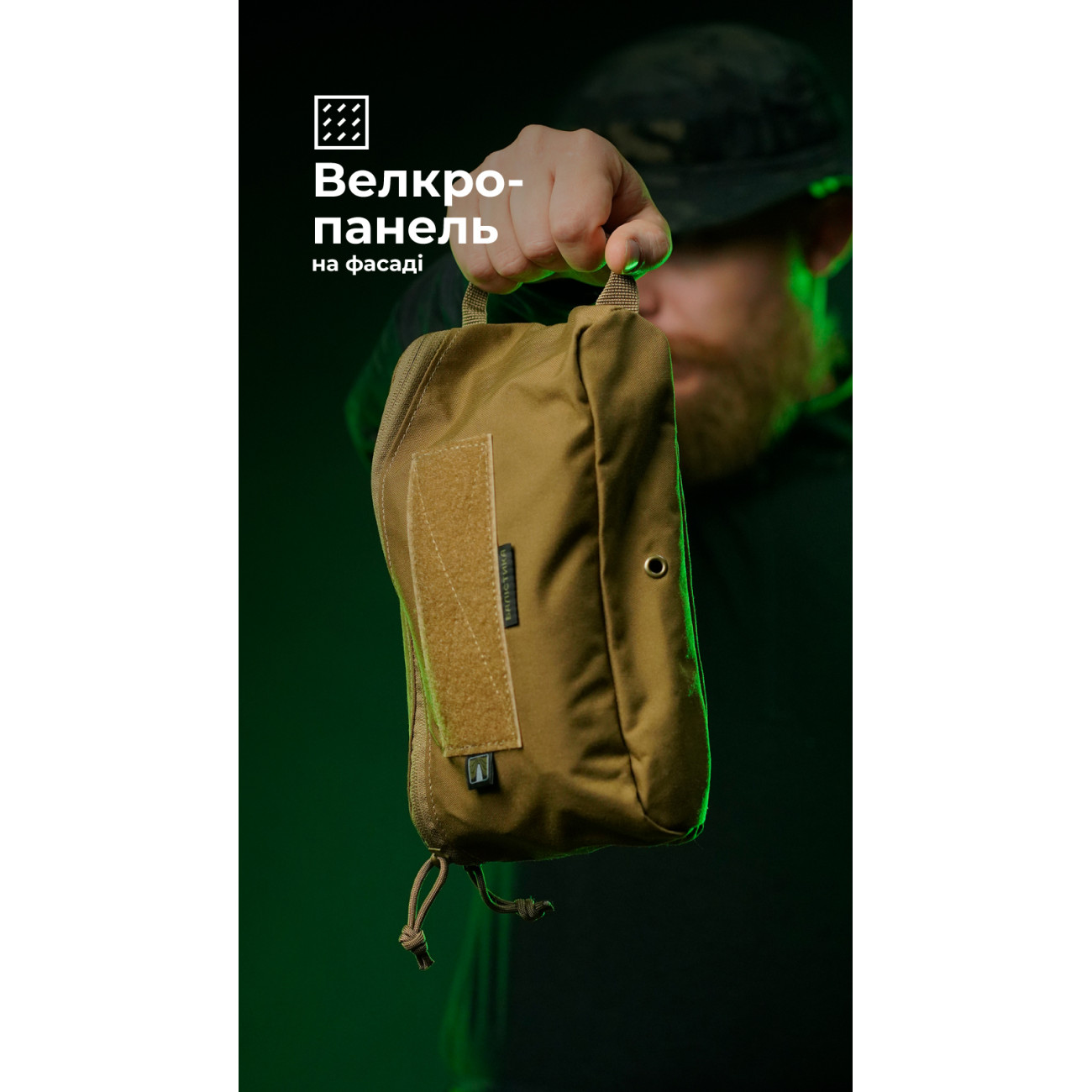 🔹 Спереди подсумка помещена велкро-панель (15×5 см).