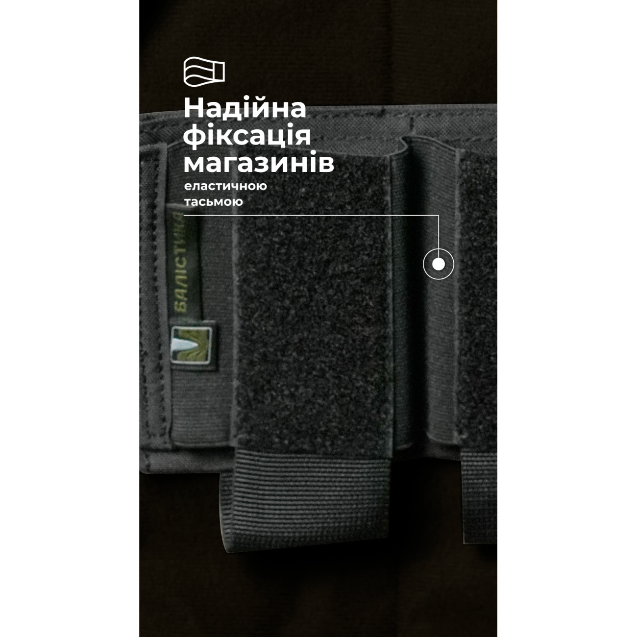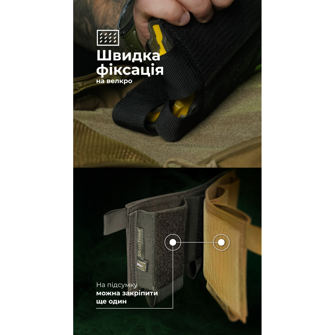 🔹 Впереди на каждом отсеке помещена велкро-панель (5×10 см). На них можно закрепить еще один такой подсумок под магазины.