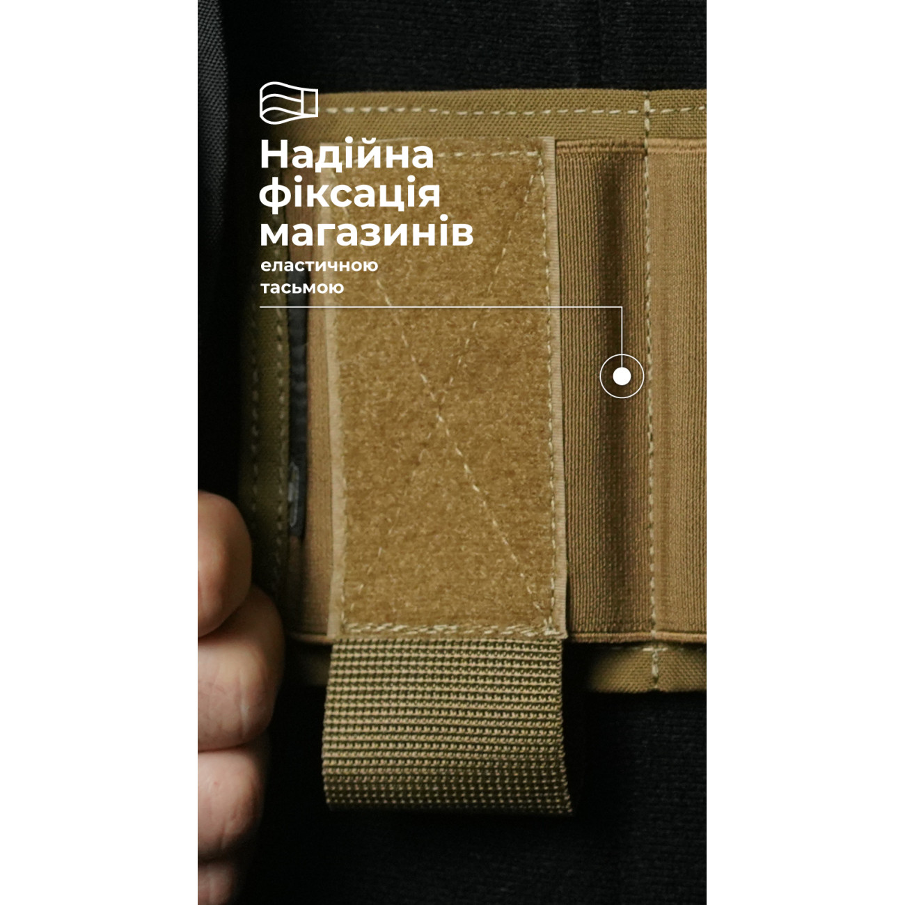 🔹 Плотность удержания обеспечивается благодаря эластичной тесьме, из которой изготовлена передняя часть подсумка.