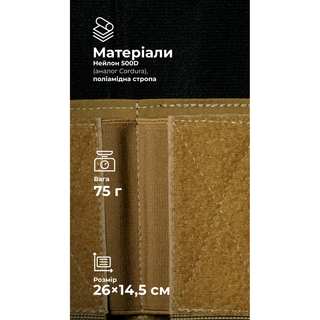🔹 Крепится к снаряжению на липучку (24×10 см).