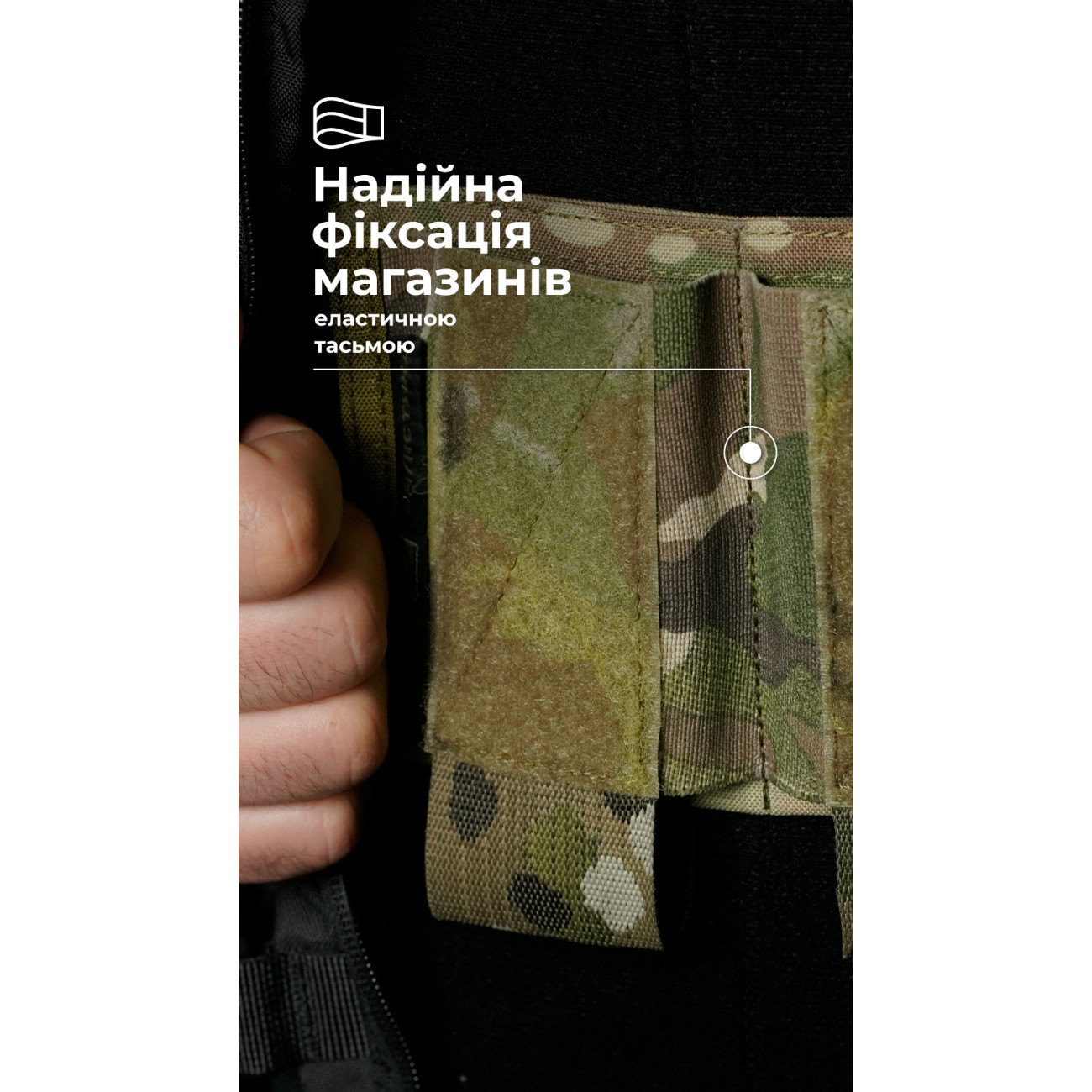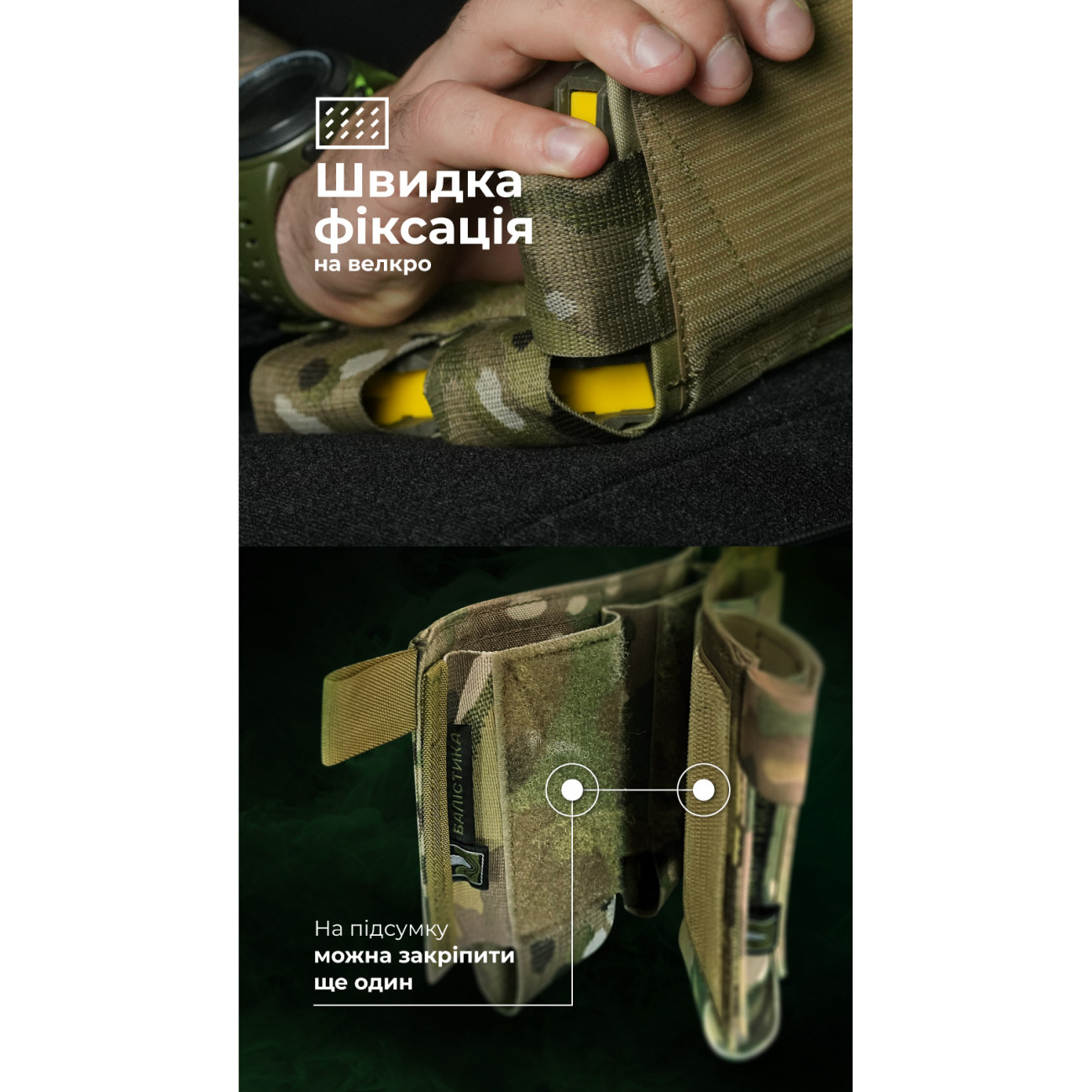 🔹 Впереди на каждом отсеке помещена велкро-панель (5×10 см). На них можно закрепить еще один такой подсумок под магазины.