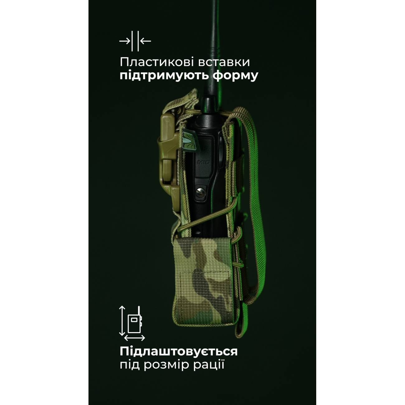 Универсальный адаптивный подсумок упростит работу с рацией и не даст ей выпасть во время активности.
