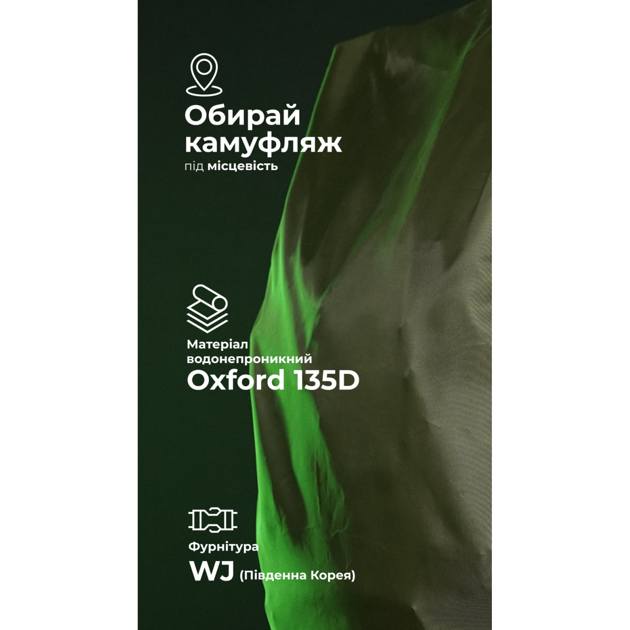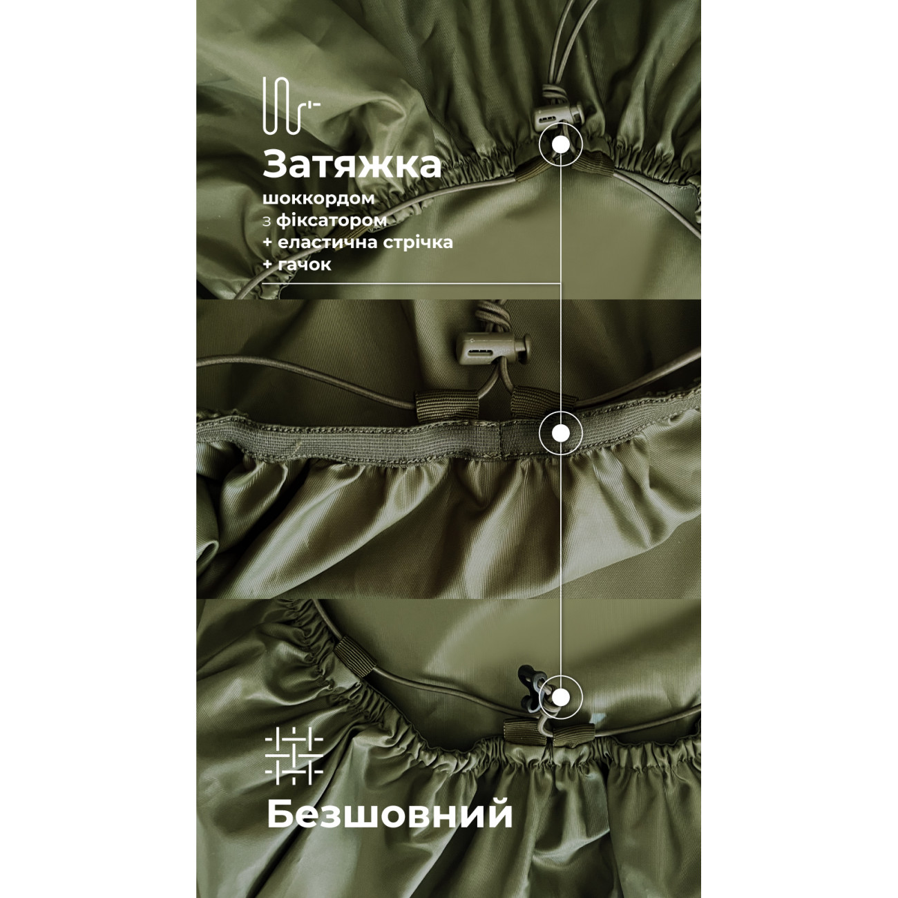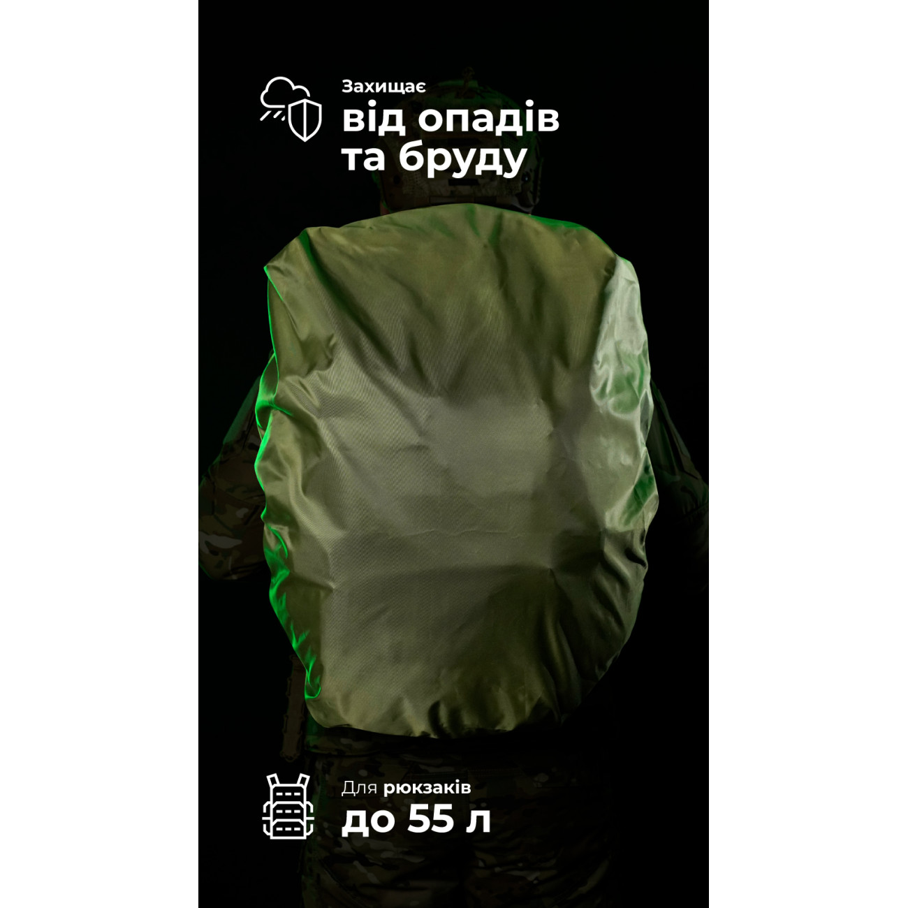 🔹 Объем до 55 л позволяет использовать кавер для покрытия рюкзаков большого размера, например «Зоряника» или «Гамуза».