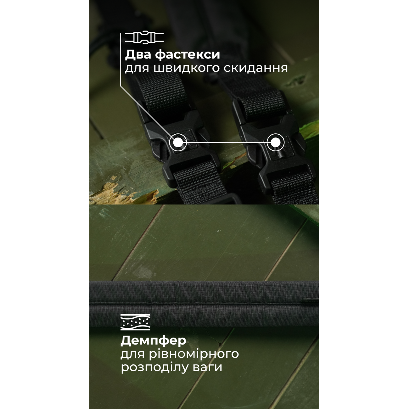🔹 На обоих концах ремня установлены фастексы для быстрого сброса или смены местами фиксационных строп.