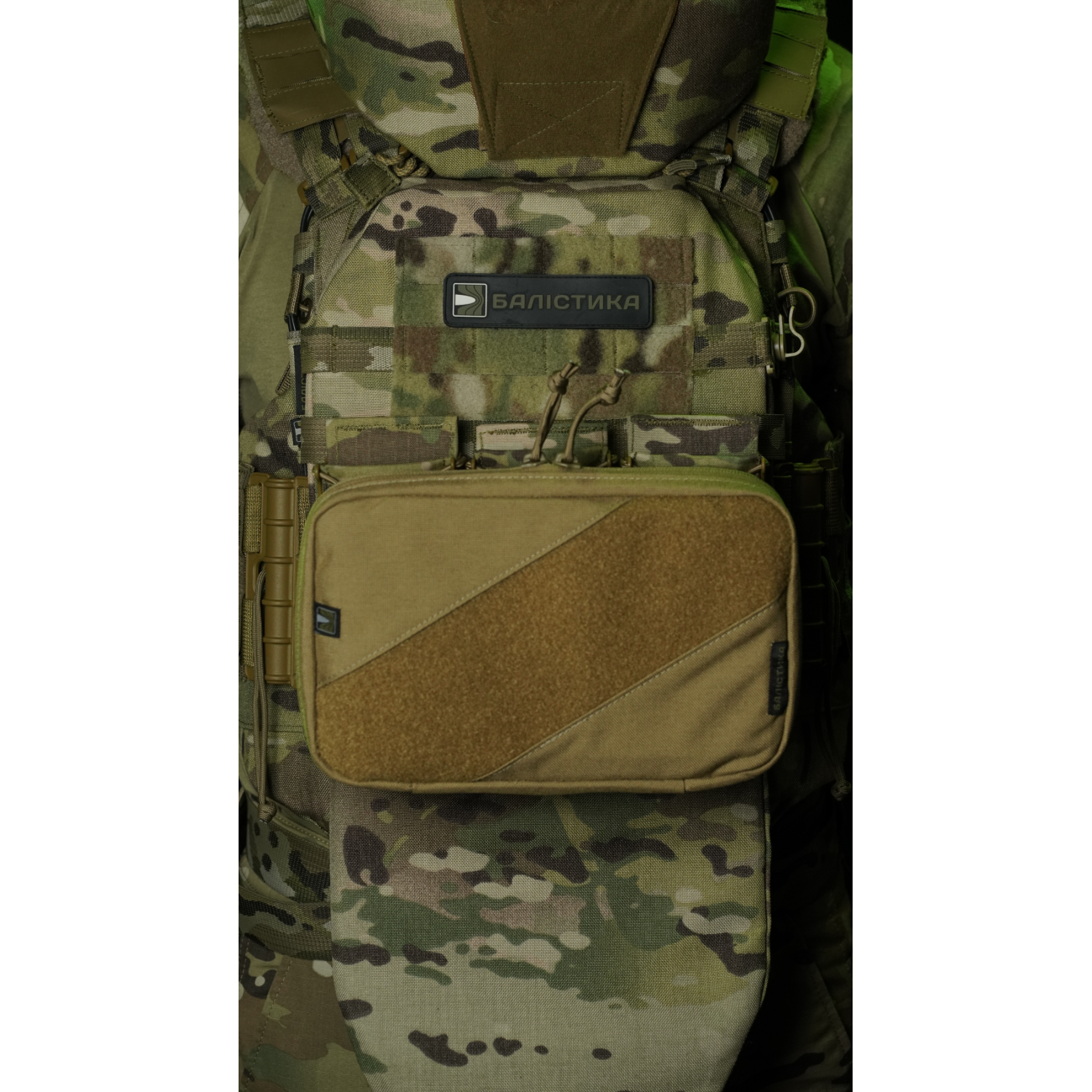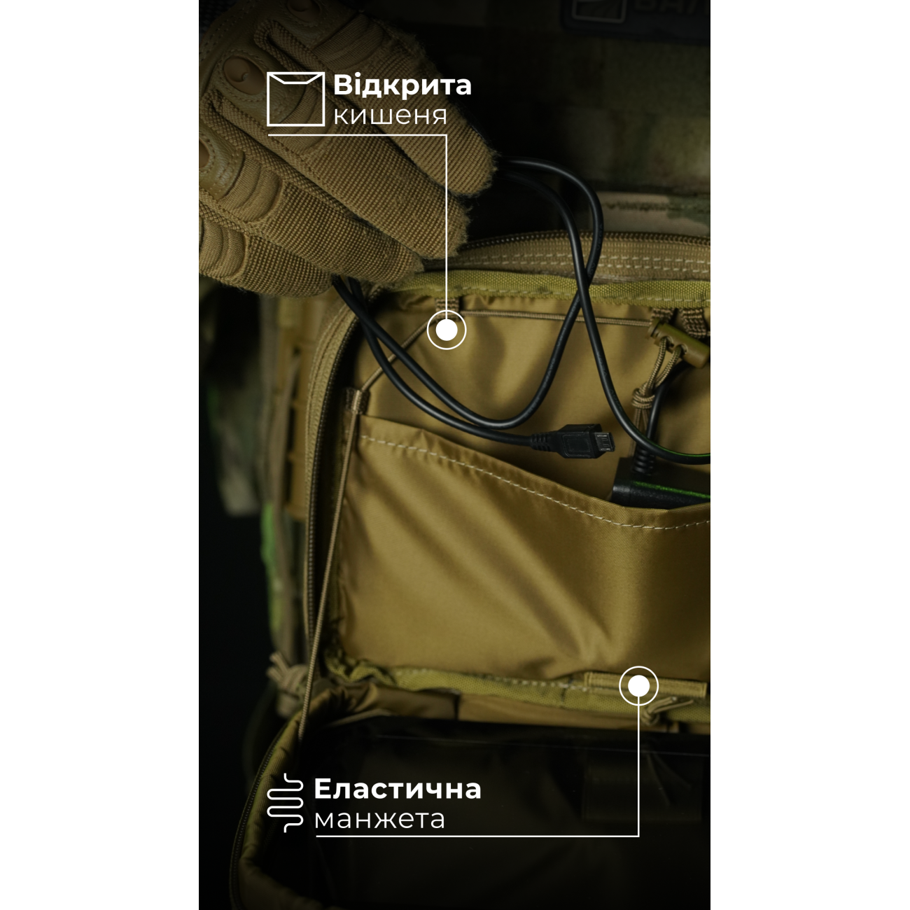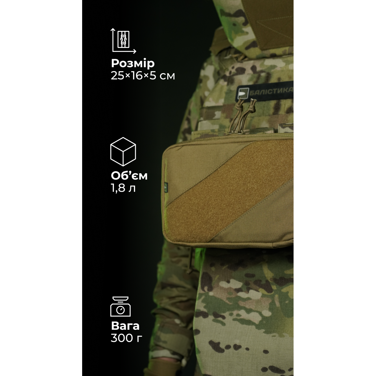 🔹 Спереди предусмотрена фирменная косая велкро-панель (~27×8 см), на которую можно крепить патчи и идентификаторы.