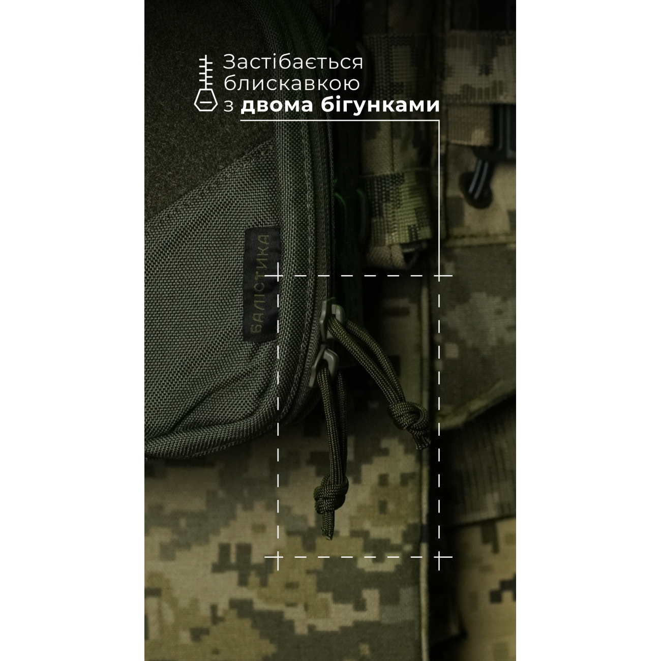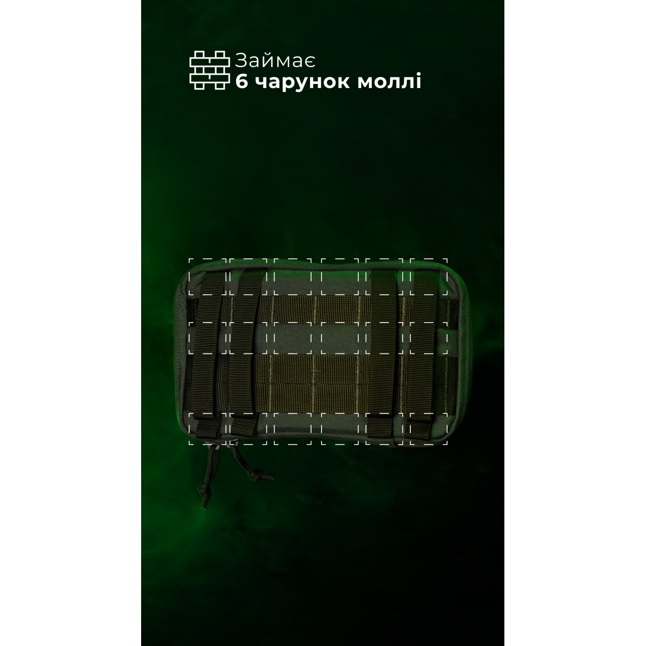 🔹 Подсумок шнуруется к плитоноске четырьмя стропами и занимает ширину шести ячеек молли. Оптимально закрепить его сверху на трех «Колчанах».