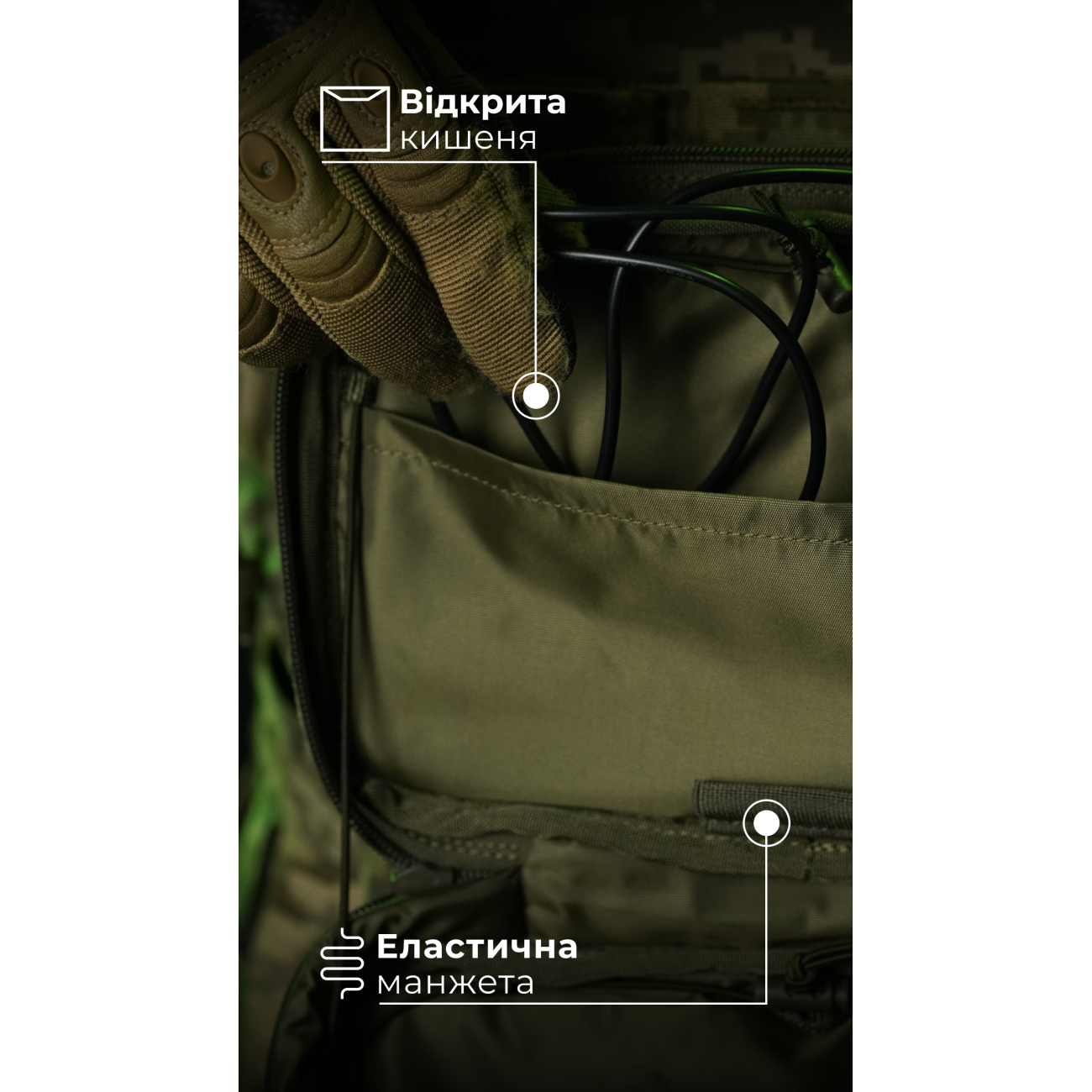 - Внешняя велкро-панель под патчи и идентификаторы