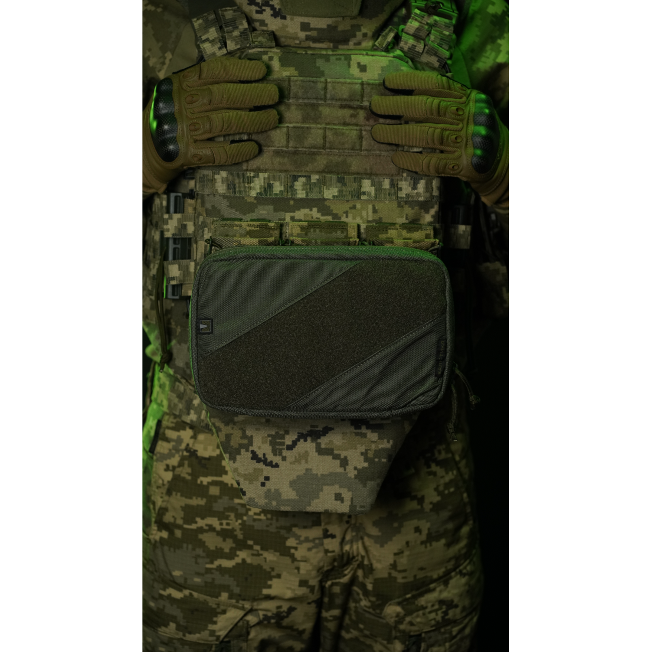 ✔️ Благодаря этому при размещении подсумка на передней панели плитоноски или бронежилета он выступает рабочей платформой и освобождает руки.