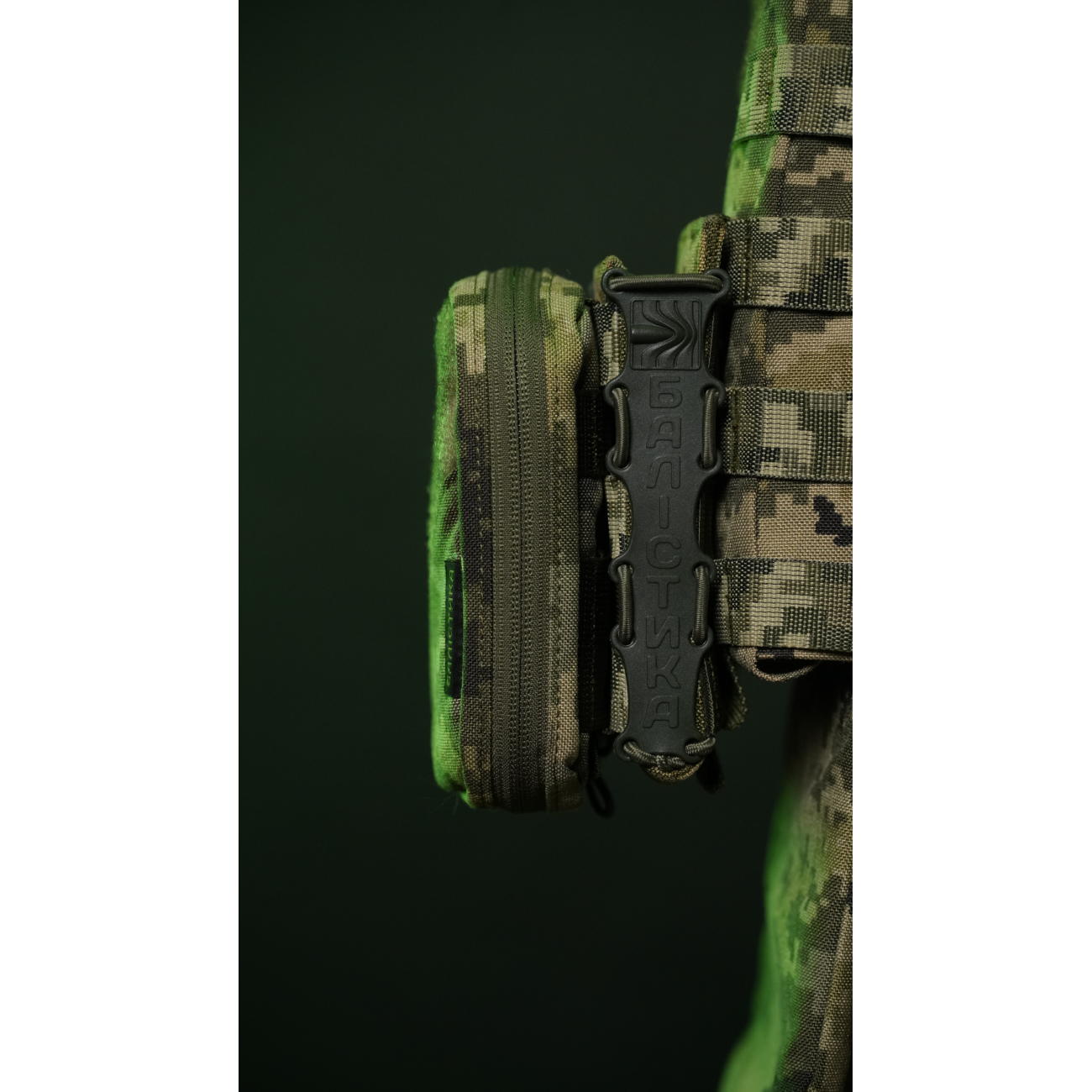 🔹 Подсумок шнуруется к плитоноске четырьмя стропами и занимает ширину шести ячеек молли. Оптимально закрепить его сверху на трех «Колчанах».