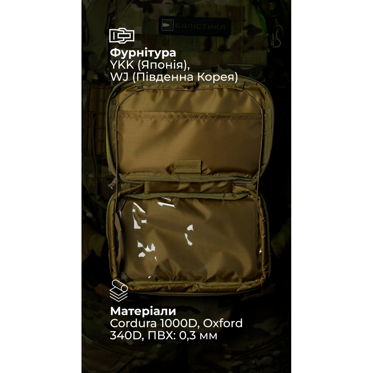 - Внешняя велкро-панель под патчи и идентификаторы