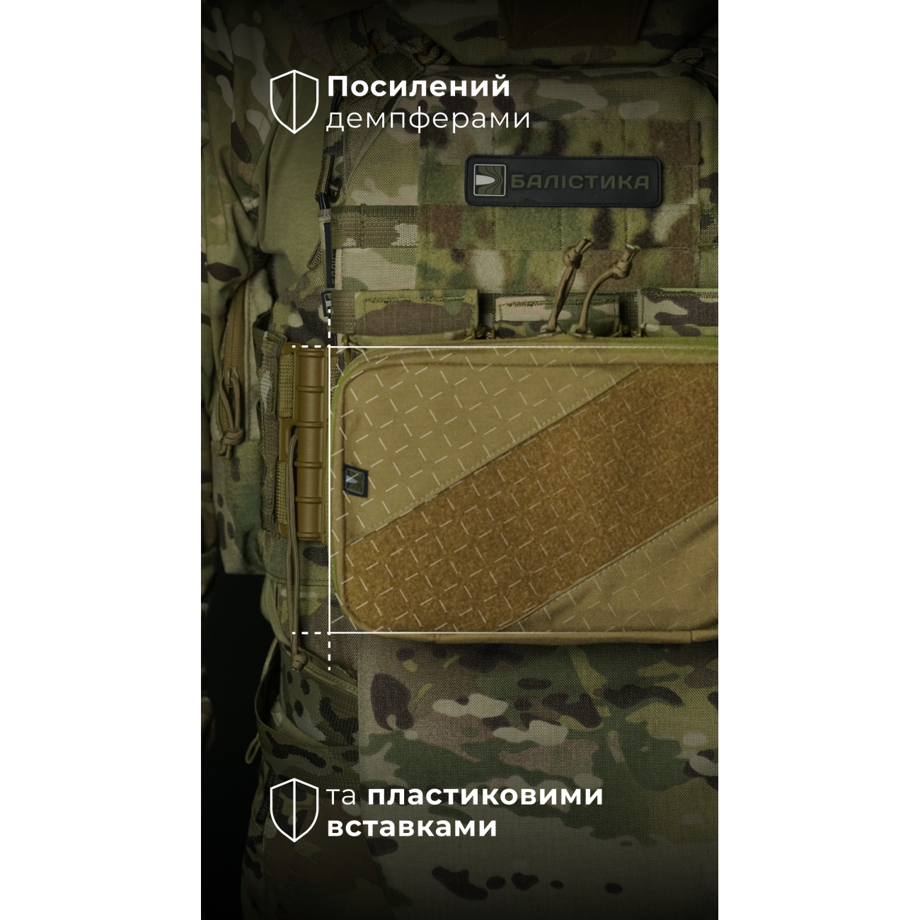 🔹 Спереди предусмотрена фирменная косая велкро-панель (~27×8 см), на которую можно крепить патчи и идентификаторы.