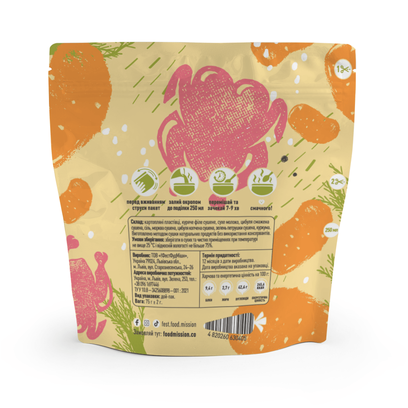 Сублимированная еда "Пюре с куриным филе" (75 г) ТМ Food Mission