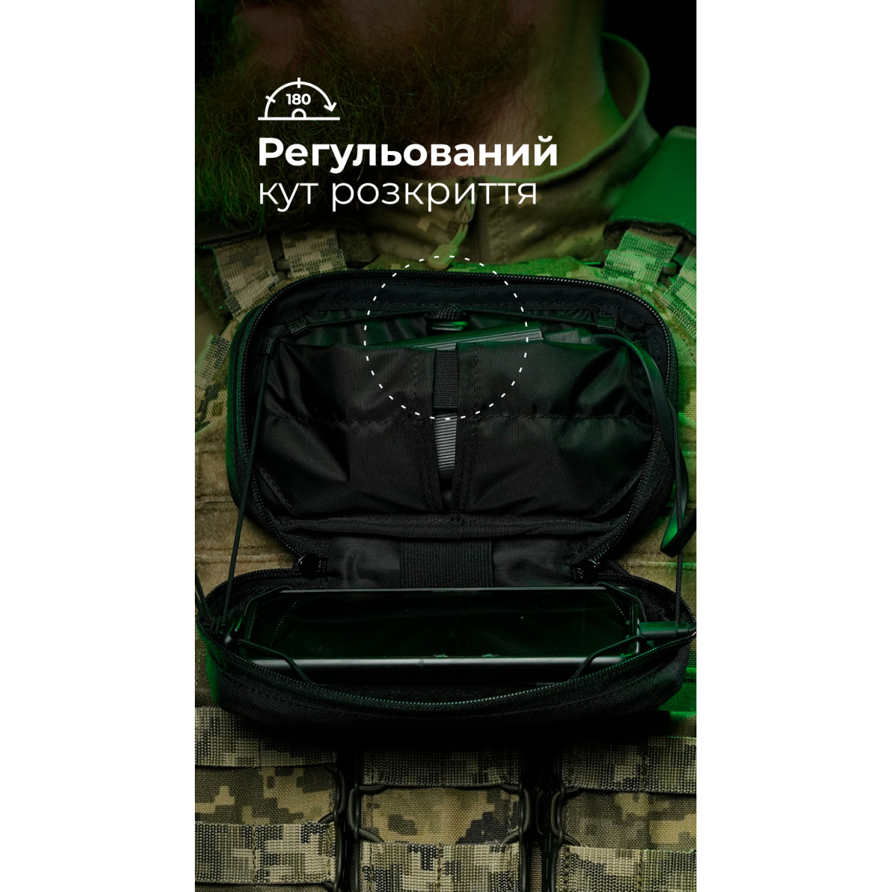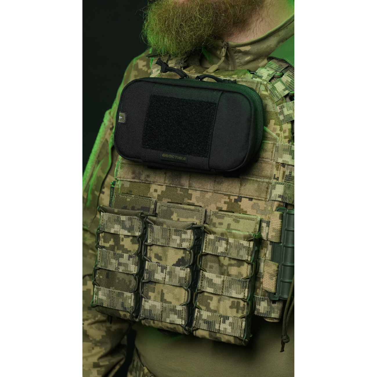 ✔️ Благодаря этому при размещении подсумка на передней панели плитоноски или бронежилета он выступает рабочей платформой и освобождает руки.