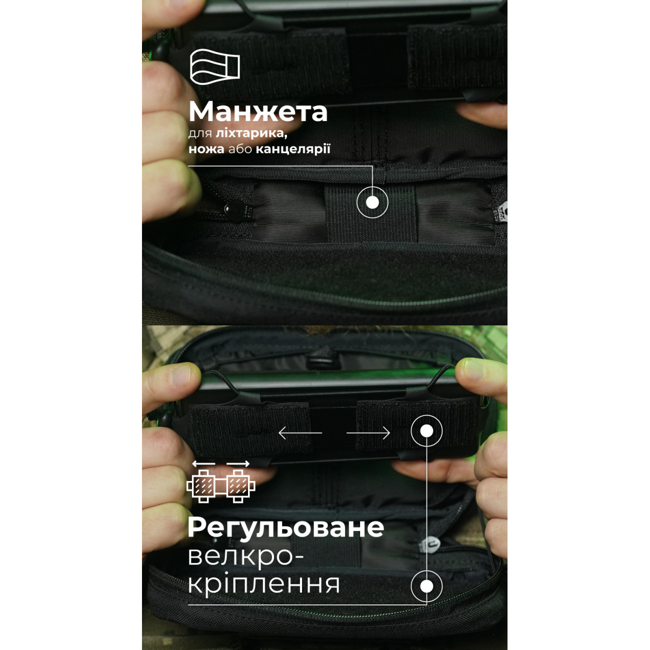 🔹 Спереди имеет велкро-панель (10×7 см), на которую можно крепить патчи и идентификаторы.