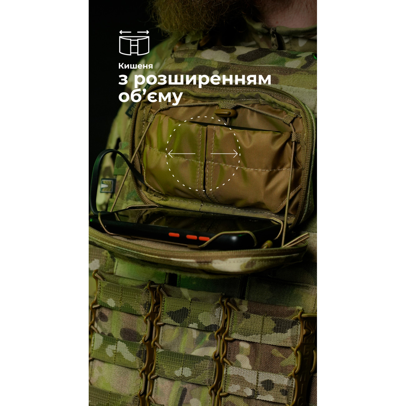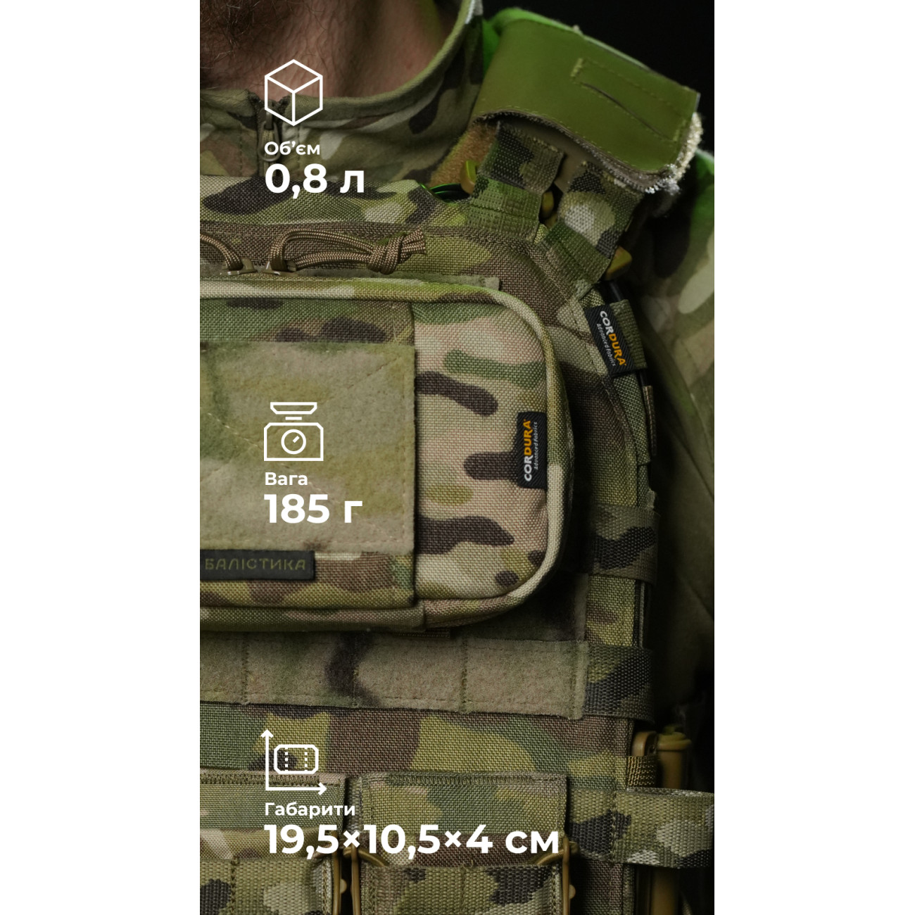 🔹 Спереди имеет велкро-панель (10×7 см), на которую можно крепить патчи и идентификаторы.