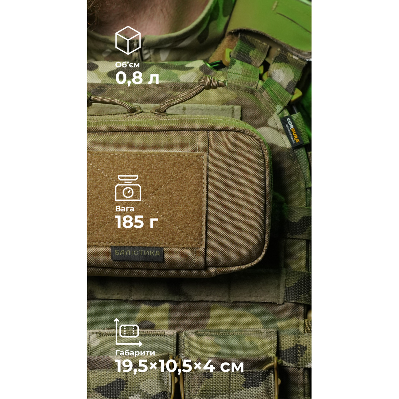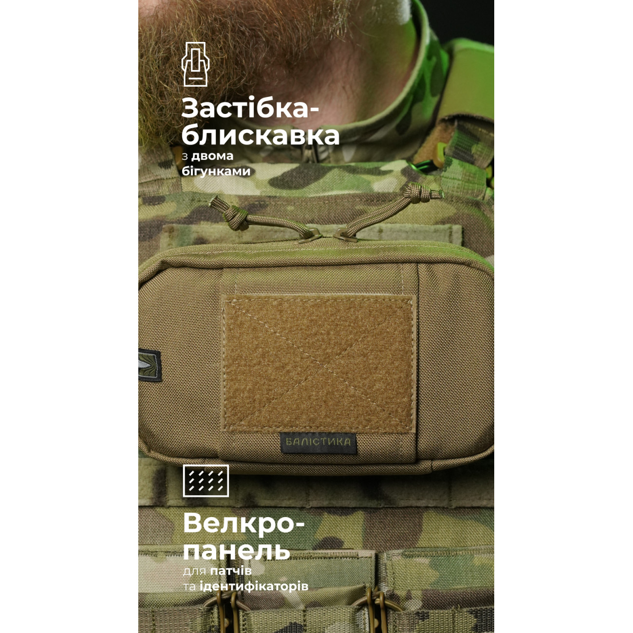 🔹 Спереди имеет велкро-панель (10×7 см), на которую можно крепить патчи и идентификаторы.