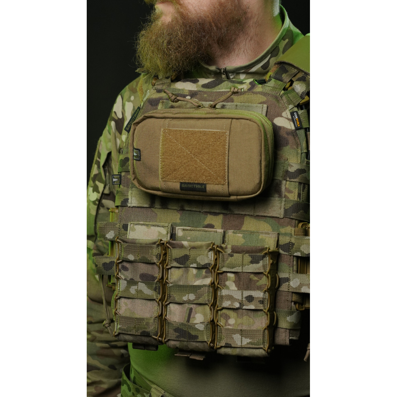✔️ Благодаря этому при размещении подсумка на передней панели плитоноски или бронежилета он выступает рабочей платформой и освобождает руки.