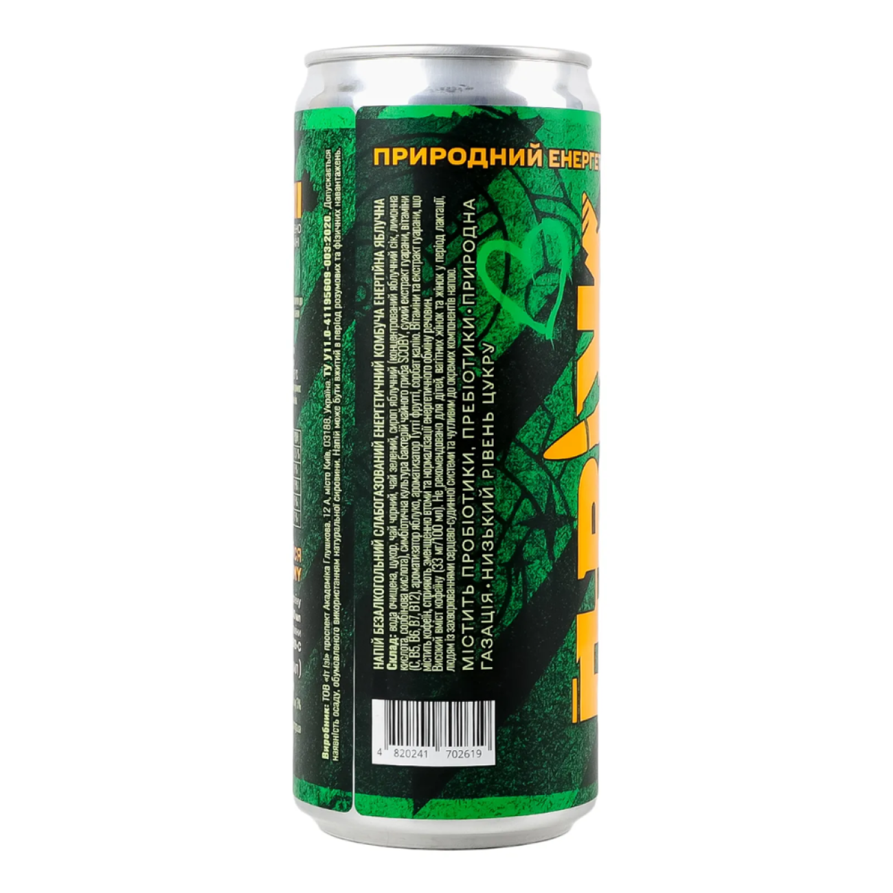 🔹Основным компонентом в составе является комбуча. Благодаря ей энергетик имеет приятный слабогазированный яблочный привкус.