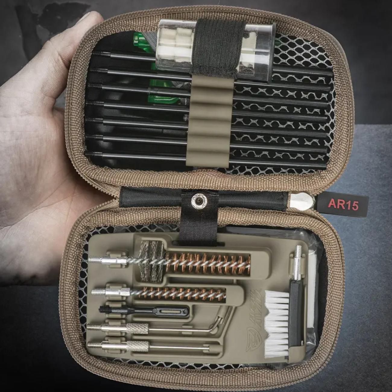 Удобный, компактный набор “Gun Boss AR-15 предназначен для чистки оружия, как дома, так и в полевых условиях.
